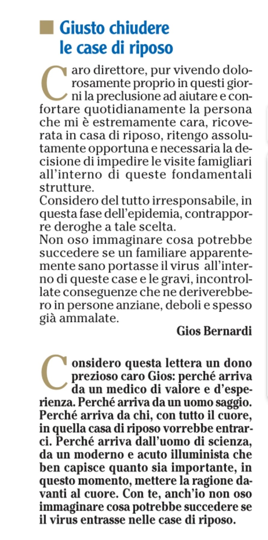 COMUNICHIAMO CHE A PARTIRE DA OGGI 05/03/2020 E FINO A DIVERSE DISPOSIZIONI SONO VIETATI GLI ACCESSI IN STRUTTURA, SALVO DEROGHE ECCEZIONALI CHE ANDRANNO CONCORDATE CON IL DIRETTORE SANITARIO DOTT. GIOVANNI RUBINO AL NR. 0463902062 OPPURE ALL’INDIRIZZO EMAIL GIO.RUBINO@ALICE.IT.